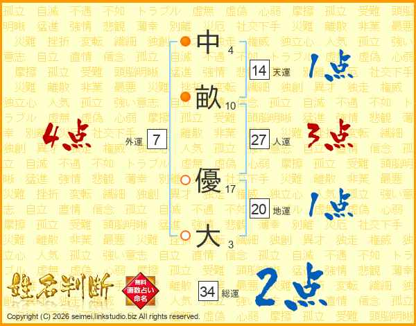 中畝優大さんの天運は14画の1点!
