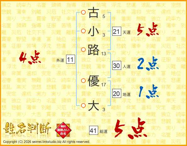 古小路優大さんの天運は21画の5点!