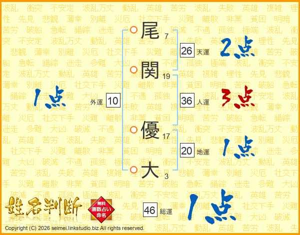 尾関優大さんの天運は26画の2点!