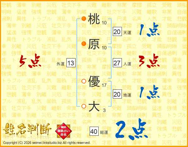 桃原優大さんの外運は13画の5点!
