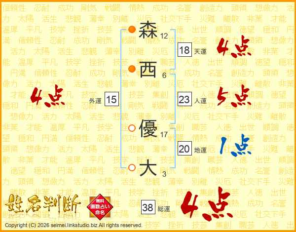 森西優大さんの天運は18画の4点!