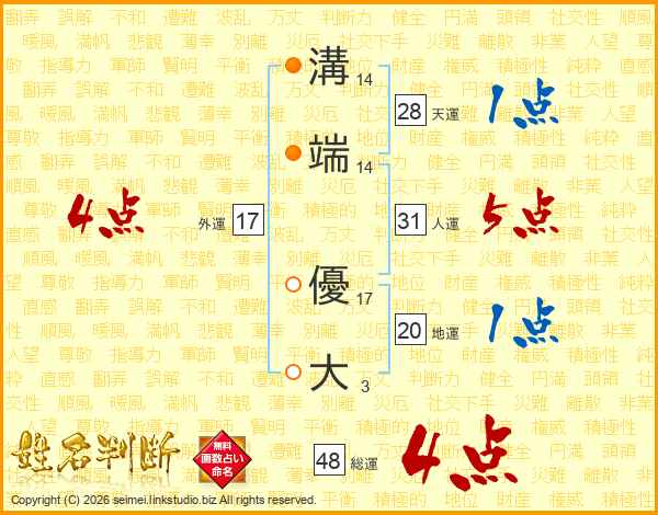 溝端優大さんの人運は31画の5点!