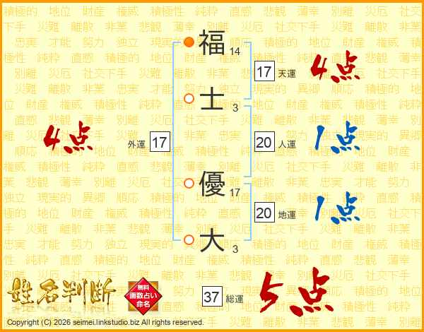福(14画)士(3画) 優(17画)大(3画)