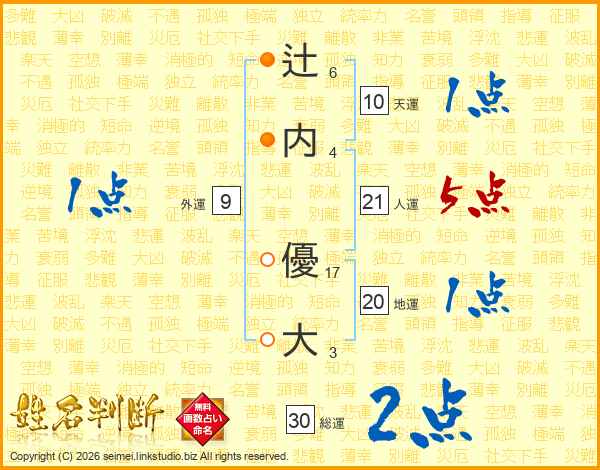 辻(6画)内(4画) 優(17画)大(3画)