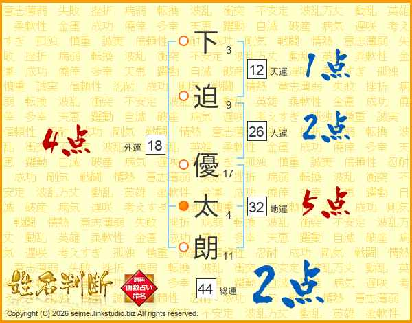 下迫優太朗さんの人運は26画の2点!