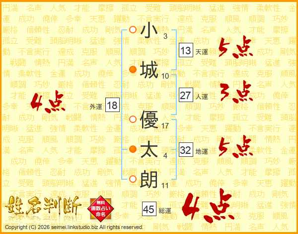 小城優太朗さんの総運は45画の4点!