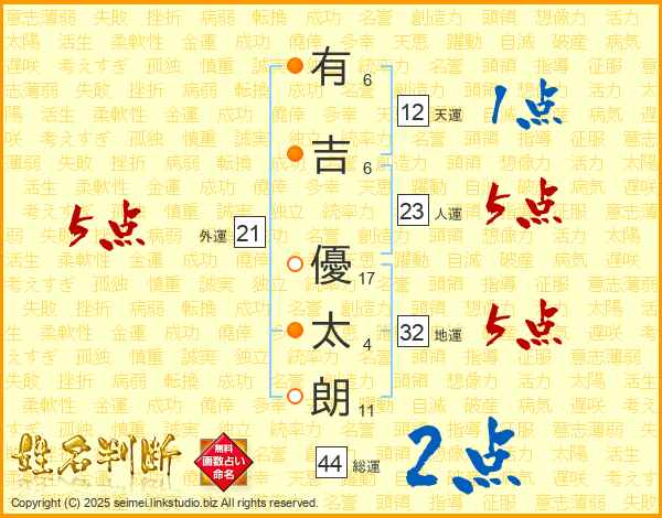 有吉優太朗さんの総運は44画の2点!
