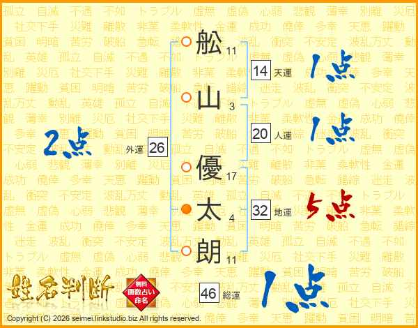 舩山優太朗さんの天運は14画の1点!