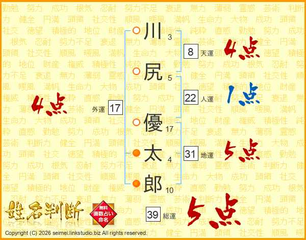 川尻優太郎さんの総運は39画の5点!