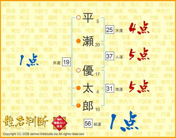 平瀬優太郎さんの総運は56画の1点!