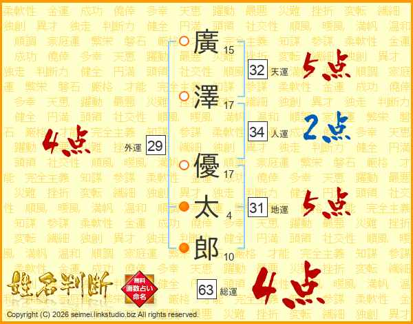廣澤優太郎さんの総運は63画の4点!