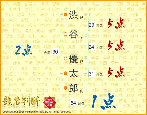 渋谷優太郎さんの天運は23画の5点!