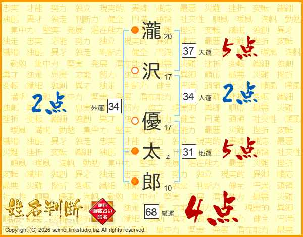 瀧沢優太郎さんの総運は68画の4点!