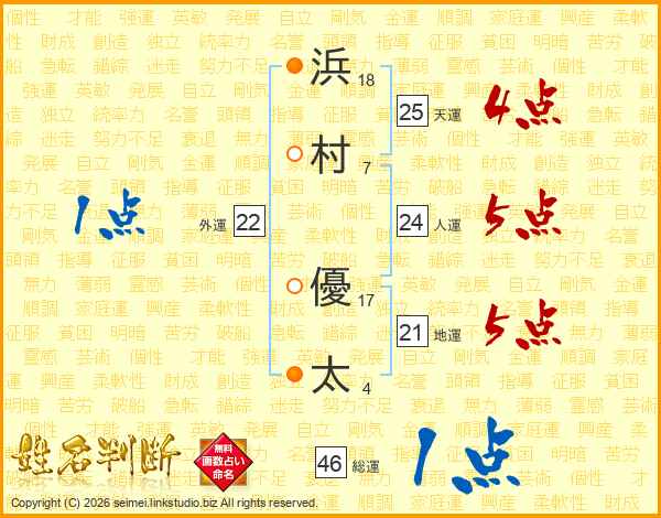 浜村優太さんの天運は25画の4点!