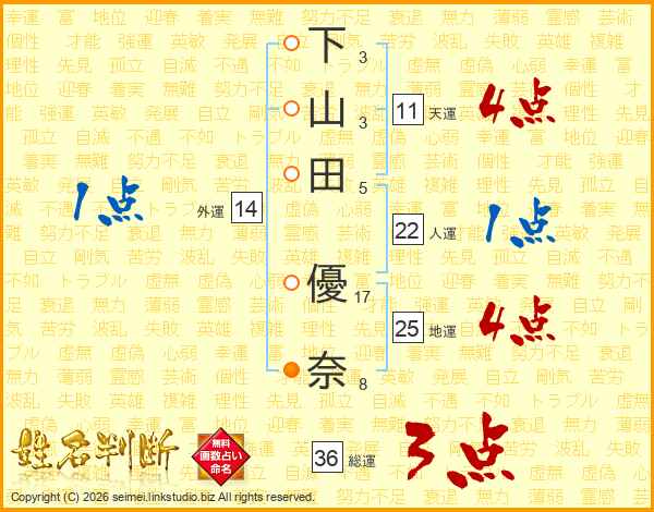 下山田優奈さんの地運は25画の4点!