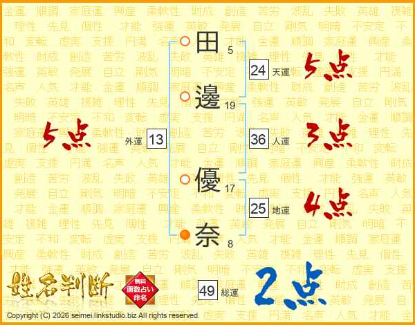 田邊優奈さんの外運は13画の5点!