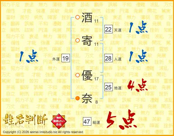 酒寄優奈さんの総運は47画の5点!