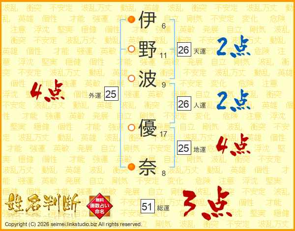 伊野波優奈さんの天運は26画の2点!