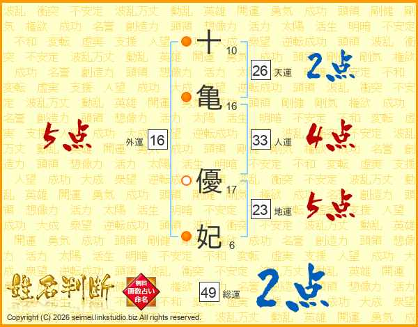 十亀優妃さんの天運は26画の2点!