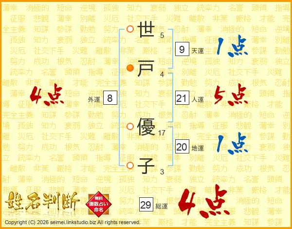 世戸優子さんの総運は29画の4点!