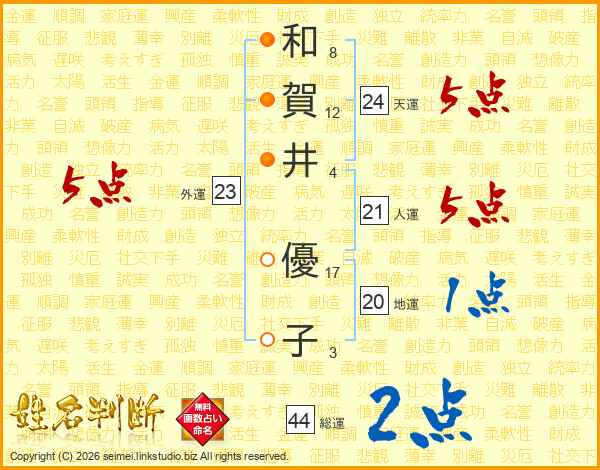 和賀井優子さんの総運は44画の2点!