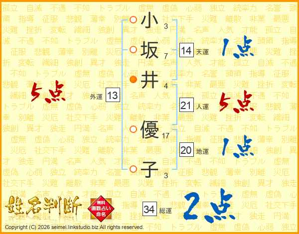 小坂井優子さんの総運は34画の2点!