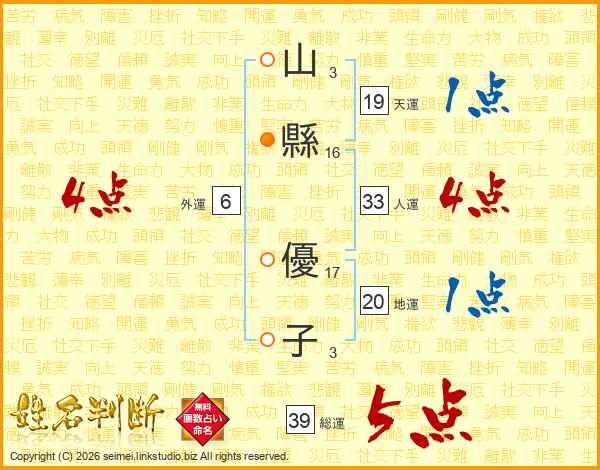 山縣優子さんの総運は39画の5点!