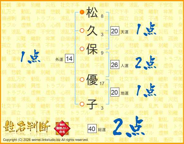 松久保優子さんの総運は40画の2点!