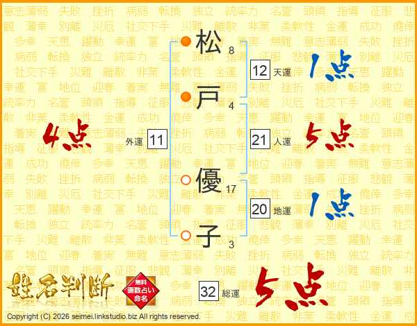 松戸優子さんの総運は32画の5点!