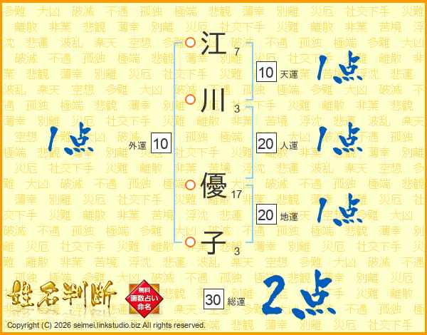 江川優子さんの総運は30画の2点!