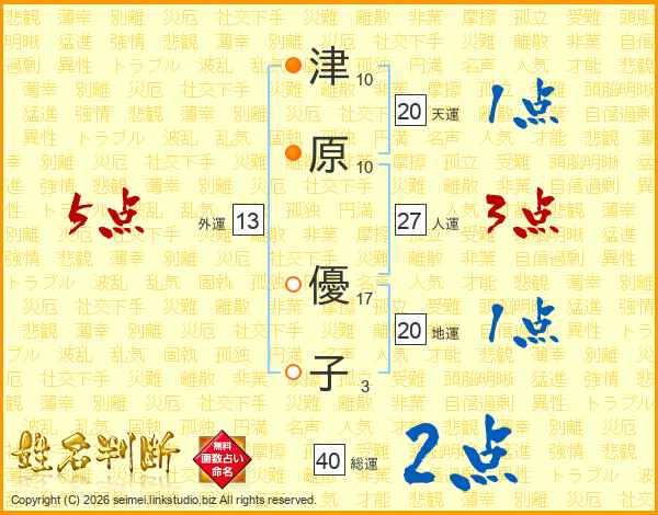 津原優子さんの天運は20画の1点!