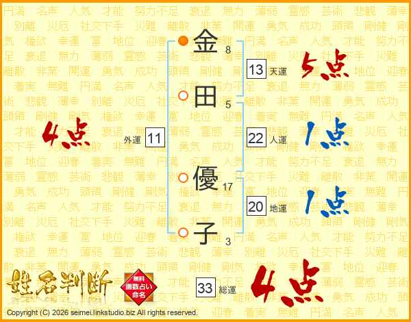 金田優子さんの総運は33画の4点!