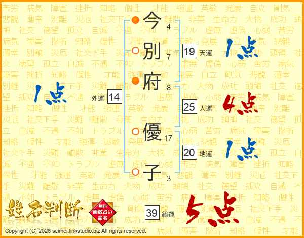 今別府優子さんの総運は39画の5点!