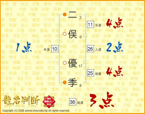 二俣優季さんの天運は11画の4点!