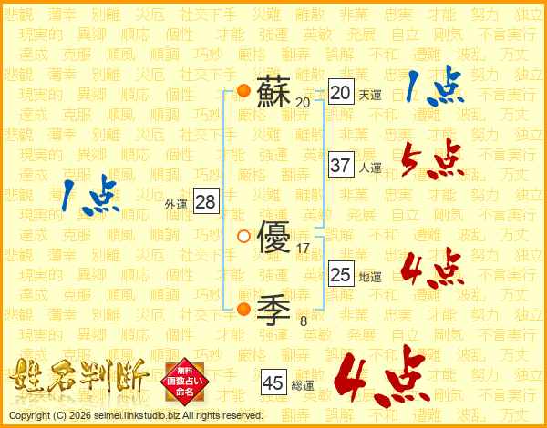 蘇優季さんの総運は45画の4点!