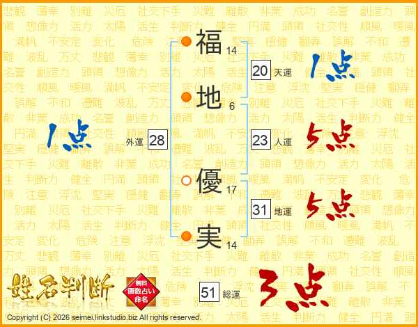 福地優実さんの総運は51画の3点!