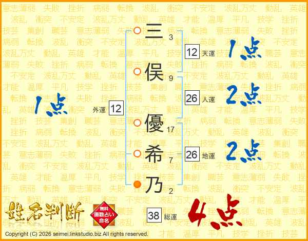 三俣優希乃さんの総運は38画の4点!