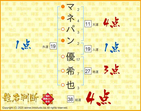マネパン優希也さんの総運は38画の4点!