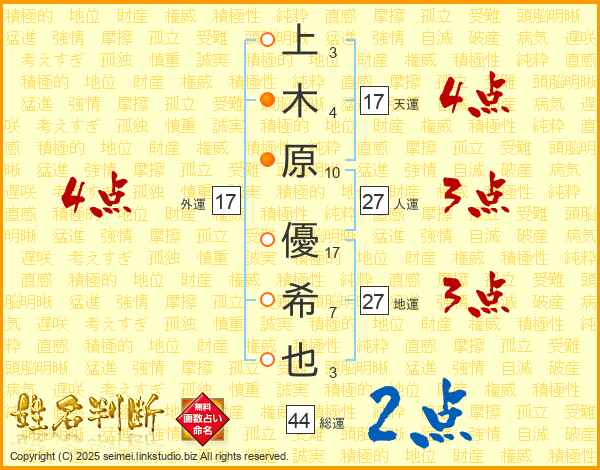 上(3画)木(4画)原(10画) 優(17画)希(7画)也(3画)
