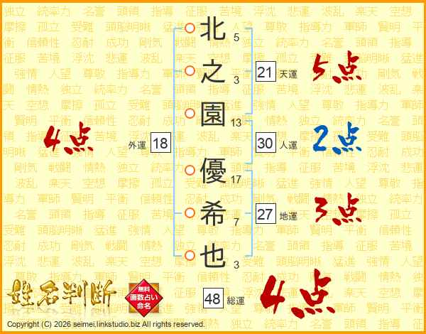 北之園優希也さんの総運は48画の4点!