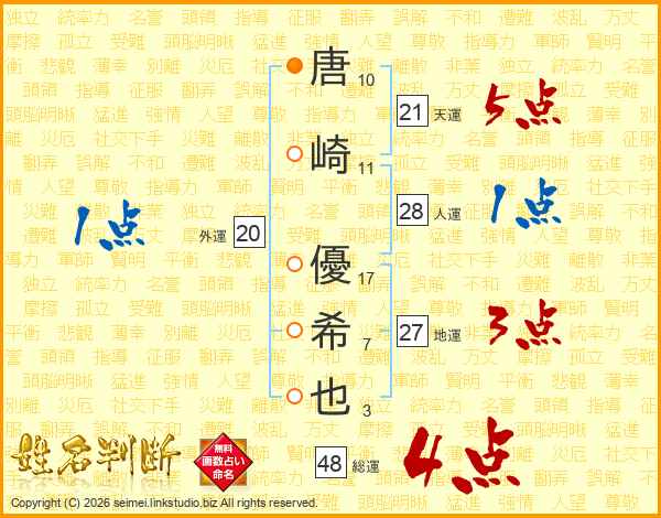 唐崎優希也さんの総運は48画の4点!