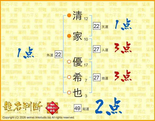 清家優希也さんの総運は49画の2点!