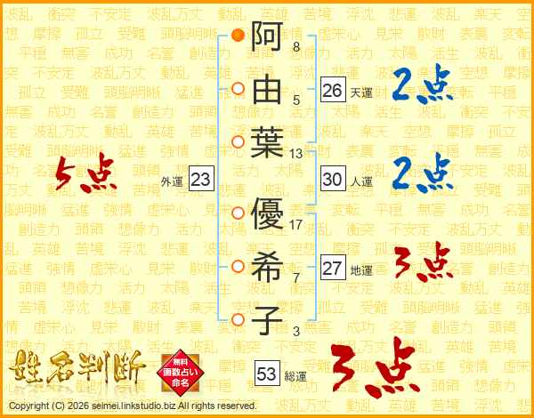 阿由葉優希子さんの総運は53画の3点!