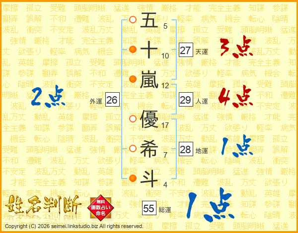 五十嵐優希斗さんの総運は55画の1点!