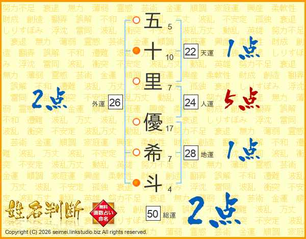 五十里優希斗さんの人運は24画の5点!