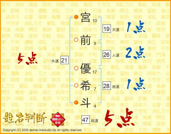 宮前優希斗さんの総運は47画の5点!
