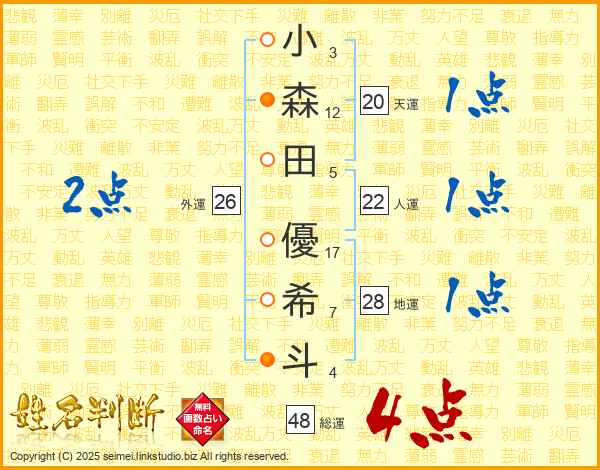 小森田優希斗さんの総運は48画の4点!