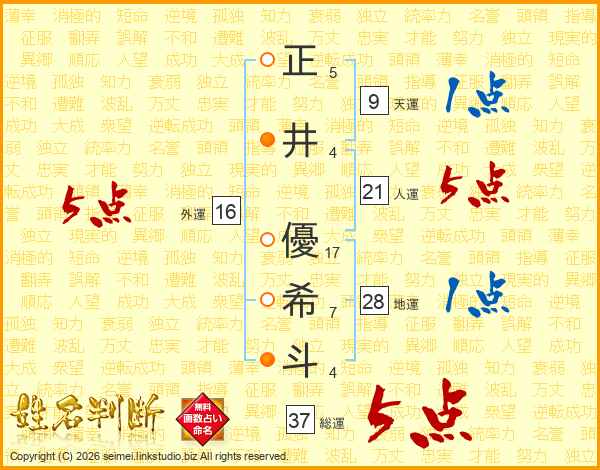 正井優希斗さんの総運は37画の5点!