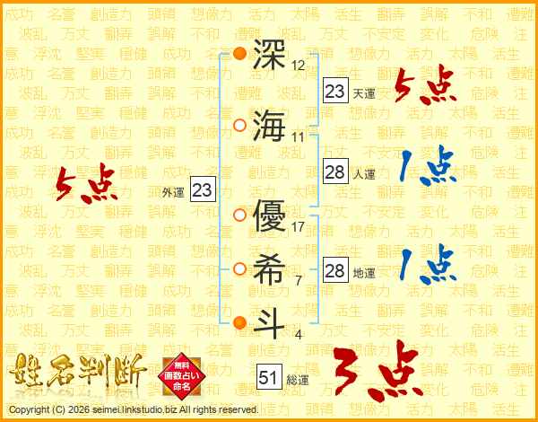 深(12画)海(11画) 優(17画)希(7画)斗(4画)