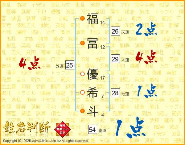 福(14画)冨(12画) 優(17画)希(7画)斗(4画)